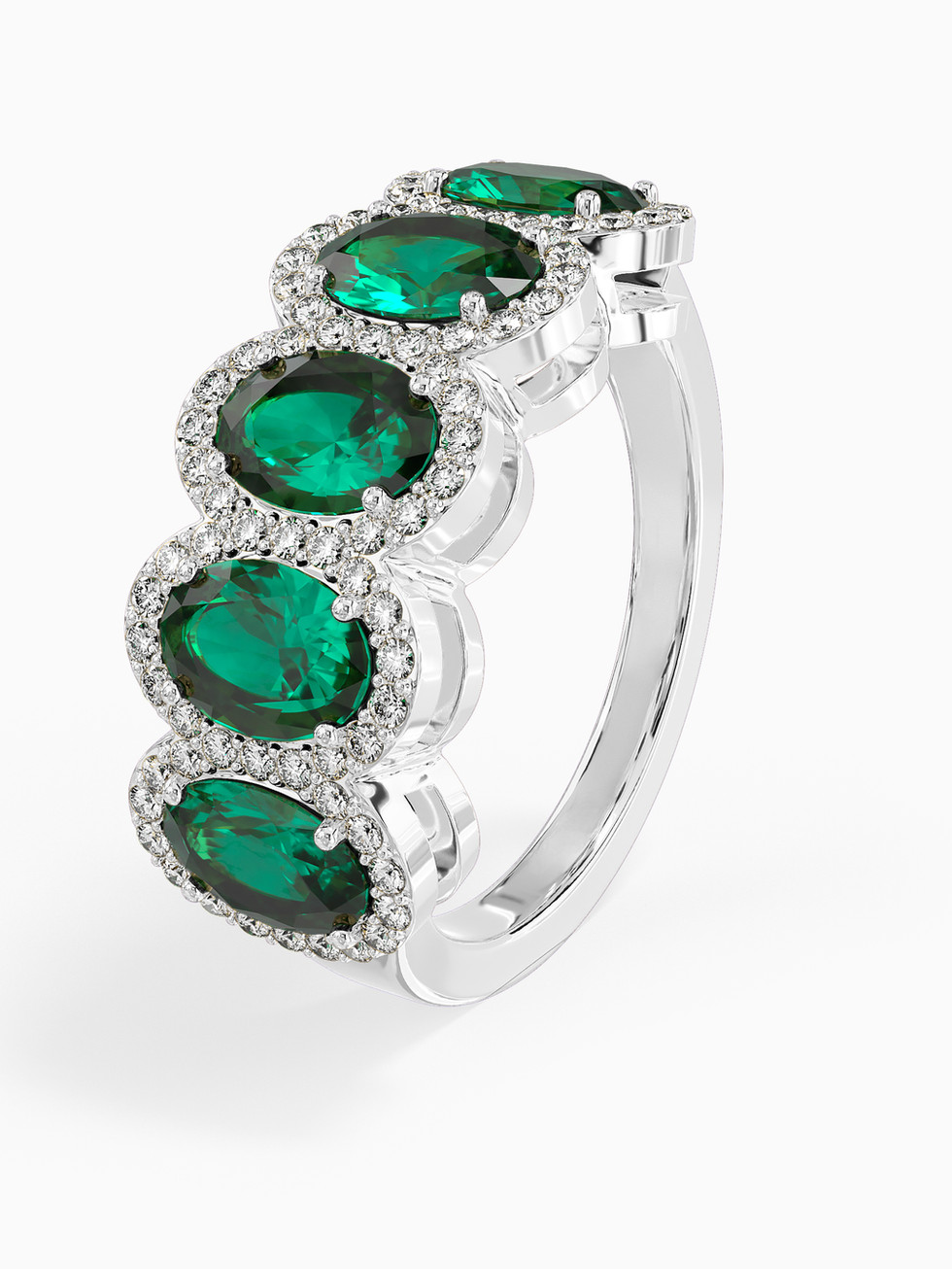 טבעת אלגנטית, מרשימה ואופנתית עשויה מזהב 14K משובצת יהלומים ואבני חן אמרלדים.